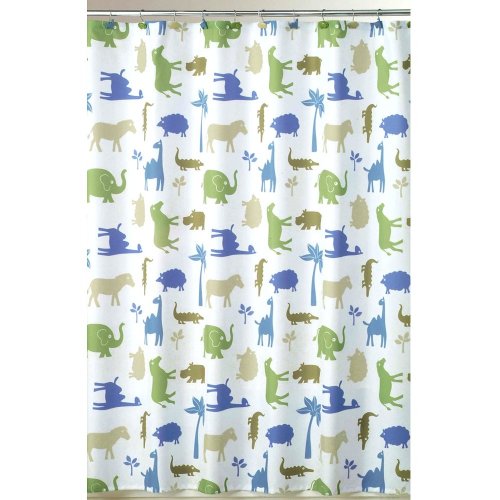 Animal Crackers fabric shower curtain adds charming accents to your bathroom. It creates fashion in any bathroom. It dresses up any and adds fun to any bathroom with whimsical animals and palm trees on a white ground two . Imported 70"x72"