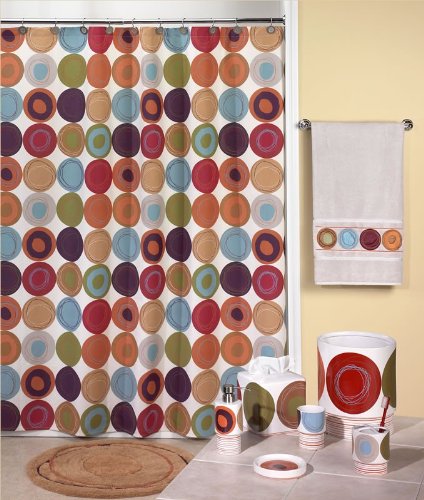 Geometry and style meet in the modernly designed Dot Swirl Shower Curtain. Earthy tones of tan, crimson, pumpkin, vine, periwinkle, and more give the 100% Cotton Duck Canvas curtain a lovely look that can match many accessories in your own home. For even more coordinating ideas, check out our Dot Swirl Towel Collection and Bath Ensemble.