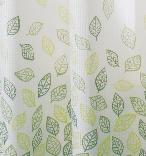 Add a touch of elegance to your bathroom's decor with the stylish Verde Shower Curtain. This bathroom shower curtain is made of 100-percent polyester fabric in a stylish waffle weave fabric. The leaf pattern is printed in calming spring green colors. The shower curtain is easy to clean and is machine washable, gentle cycle. The reinforced button holes stay strong year after year.